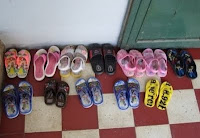 School at Thuan An starts each week with a 7 am Monday morning flag ceremony. Students line up rank and file by age on the cement drive– bright-eyed and uniform in appearance with their pressed light blue and stark white-collared shirts and matching dark blue pants. The choice of footwear is by individual design and that is where true personalities leak out – there’s everything from pink florescent flip flops to Superman plastic sandals to staid black shoes. After the female teachers, dressed in pastel business suits, congregate alongside the children, they all join in to sing the national anthem and the flag is raised on the tall pole in front of the school. That is followed by a recitation of Ho Chi Minh’s creeds – five simple statements to live by – love your country, support your community, protect the environment, live with good intentions, and be courageous. The ceremony always starts with a lot of pomp and seriousness but that usually dissolves as classmates begin to poke and elbow each other in warm familiarity.