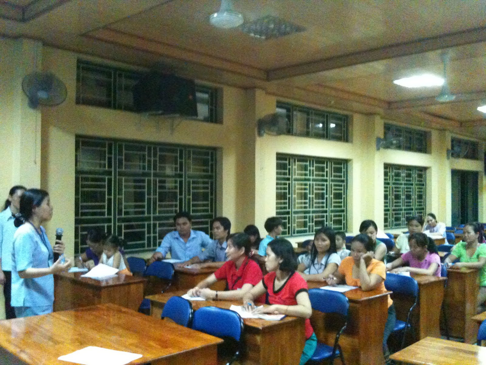 The parents arrived at Thuan An on their motorbikes, some with children in tow, and filed inside the large meeting room, camping themselves behind the small wooden desks. They gathered here tonight to ask questions and get insight from our entire team of professionals who lined up in an informal panel at the front of the room. Flying insects and geck