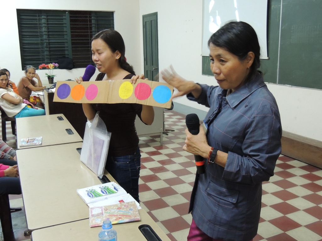 Tonight we had a Parent Workshop for about 30 local parents of children with hearing loss. We started the night with a video captured earlier in the day of a former student of Thuan An Center. He was born with a hearing loss and wears two hearing aids but has been successfully mainstreamed into his neighborhood school. This child has been a part of our summer program in the past and his mother took lessons learned to help him develop his spoken language skills. He was here today for a hearing test with our audiology program.. While he waited for his appointment, he agreed to be filmed as an example of success for our Parent Workshop. While the camera rolled, he sat in Thuy’s office bantering away with his mother about ice cream and stickers like any other 10 year old child.
