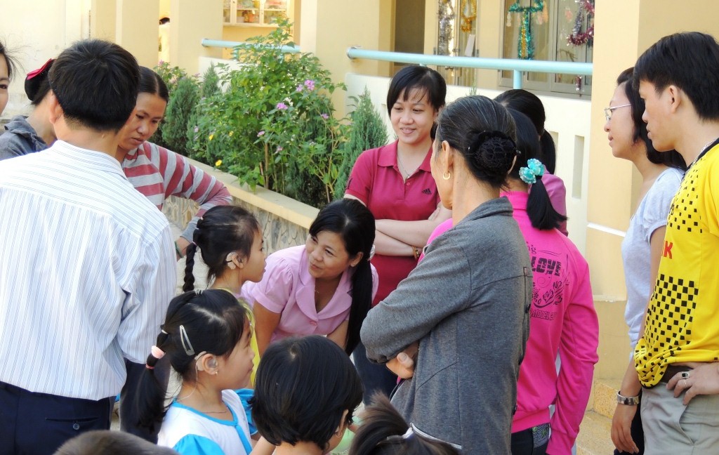 Back in 2010 on the eve of our first summer workshop, I met a father who had just learned his 2 year old daughter has a hearing loss. He was feeling helpless and concerned about his daughter’s uncertain future as he didn’t have any knowledge about deafness. He enrolled into our daytime program that year and also attended the evening parent series so he could learn everything he could about how to help his daughter learn to listen and talk. He continued his education with us in subsequent years, set up a therapy room in his home, and sought the support of the teachers at Thuan An Center who are engaged in the Global Foundation’s program.