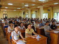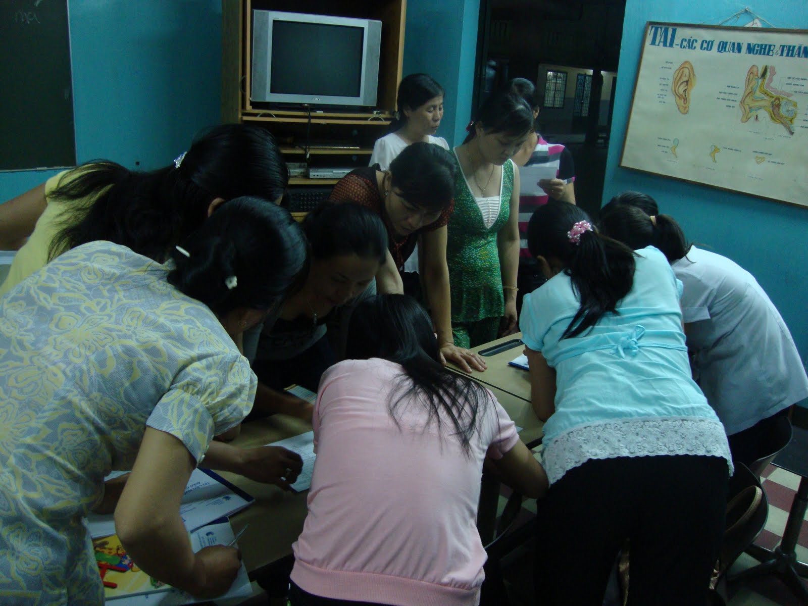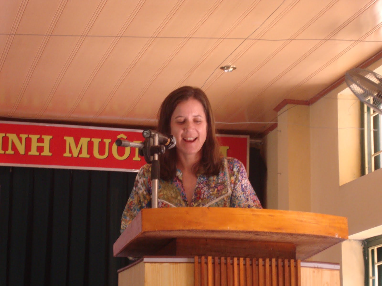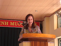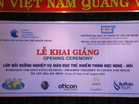 Above the stage, a large banner hung on the wall, proudly announcing our workshop and our supporters. Thuan An’s Operation Director kicked things off with an introductory speech before Thuy took the stand to share the story about how she and I met, bringing back a lot of wonderful memories. She explained how my time at Thuan An Center inspired me to start this foundation and how we are working together to help children with hearing loss all across Vietnam get the education and resources they need for successful lives.