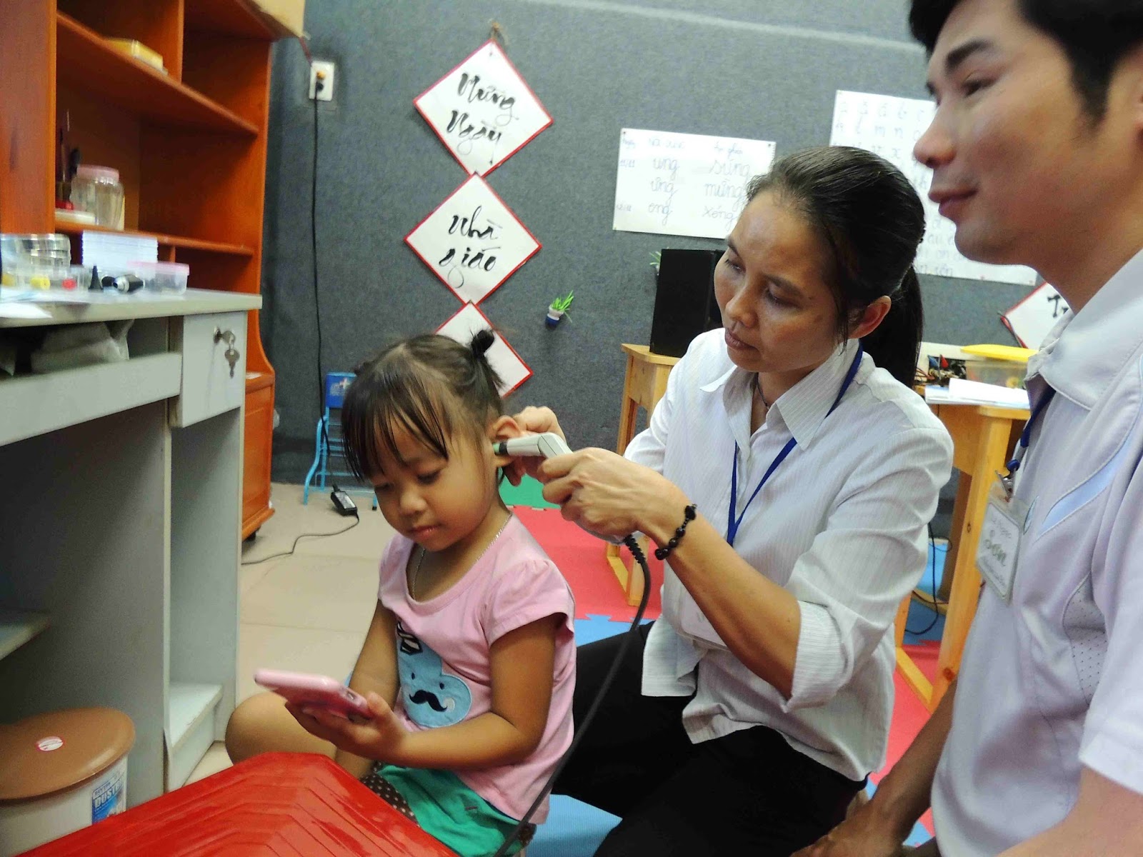 Hearing aids provided by the Global Foundation For Children With Hearing Loss were fit on children in need thanks to our partnership with Sonova’s Hear the World Foundation and a donation from Siemens Asia. These children will be supported ongoing by the technicians, teachers, and therapists we have trained over time.