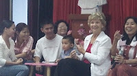 In the building next door, Jim, Lea, and Judy are engaged with the therapists. A key priority for the week is to teach the therapists how to assess where a child is developmentally and then apply appropriate strategies to help the child progress to target goals with his or her parents’ support. We’ve been bringing in chidren and their parents to take part in demonstrations of a typical therapy session. At the conclusion of each session, the group talks about where the child is in each area of development and what the family should focus on until they meet again with the therapist.